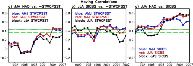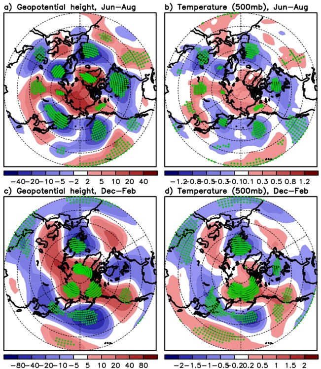- Hanna E, Cropper TE, Jones PD, Scaife AA, Allan R. Recent seasonal asymmetric changes in the NAO (a marked summer decline and increased winter variability) and associated changes in the AO and Greenland Blocking Index. Int. J. Climatol. 2015;35:2540–2554. doi: 10.1002/joc.4157. - DOI