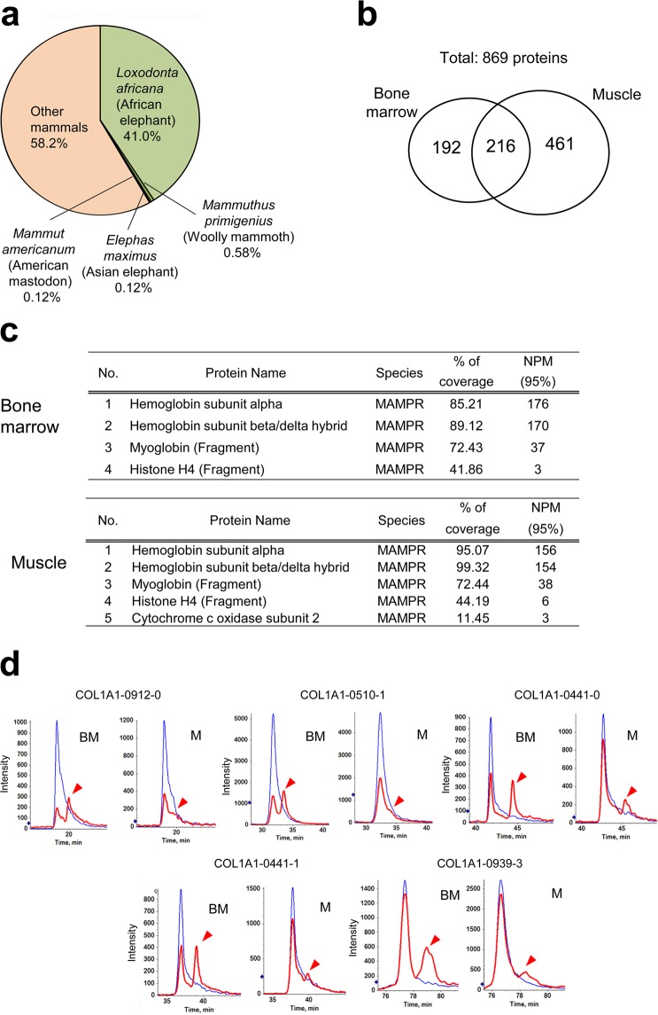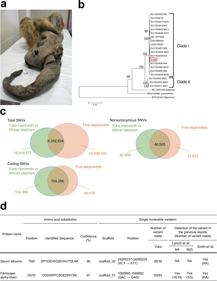 The 28,000-year-old remains of a woolly mammoth, named 'Yuka', were found in Siberian permafrost. Here we recovered the less-damaged nucleus-like structures from the remains and visualised their dynamics in living mouse oocytes after nuclear transfer. Proteomic analyses demonstrated the presence of nuclear components in the remains. Nucleus-like structures found in the tissue homogenate were histone- and lamin-positive by immunostaining. In the reconstructed oocytes, the mammoth nuclei showed the spindle assembly, histone incorporation and partial nuclear formation; however, the full activation of nuclei for cleavage was not confirmed. DNA damage levels, which varied among the nuclei, were comparable to those of frozen-thawed mouse sperm and were reduced in some reconstructed oocytes. Our work provides a platform to evaluate the biological activities of nuclei in extinct animal species.
