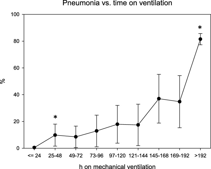 Conclusions: Likelihood of pneumonia increases with age, aspiration, and duration of MV. These parameters were not found to be associated with differences in outcomes between patients with and without pneumonia. Future studies should focus on independent parameters to more clearly identify severely injured subgroups with a high risk of developing pneumonia.