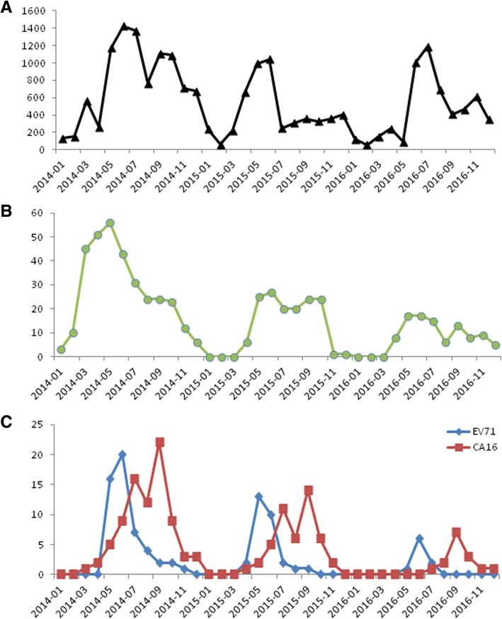 Background: Hand, foot and mouth disease (HFMD) is a transmissible infectious disease caused by human enteroviruses (EV). Here, we described features of children with severe HFMD caused by EV-A71 or coxsackievirus A16 (CV-A16) in Shanghai, China.