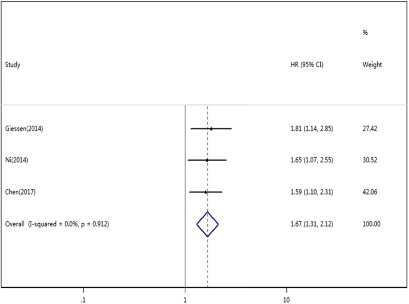 Methods: Eligible studies were identified from the PubMed, EMBASE and Science Citation Index electronic databases. The clinical characteristics, disease/progression-free survival (DFS/PFS) and overall survival (OS) were extracted from the eligible studies. The pooled hazard ratios (HRs) and 95% confidence intervals (CIs) were calculated with Stata 12.0 software. We also performed subgroup, meta-regression and sensitivity analyses.