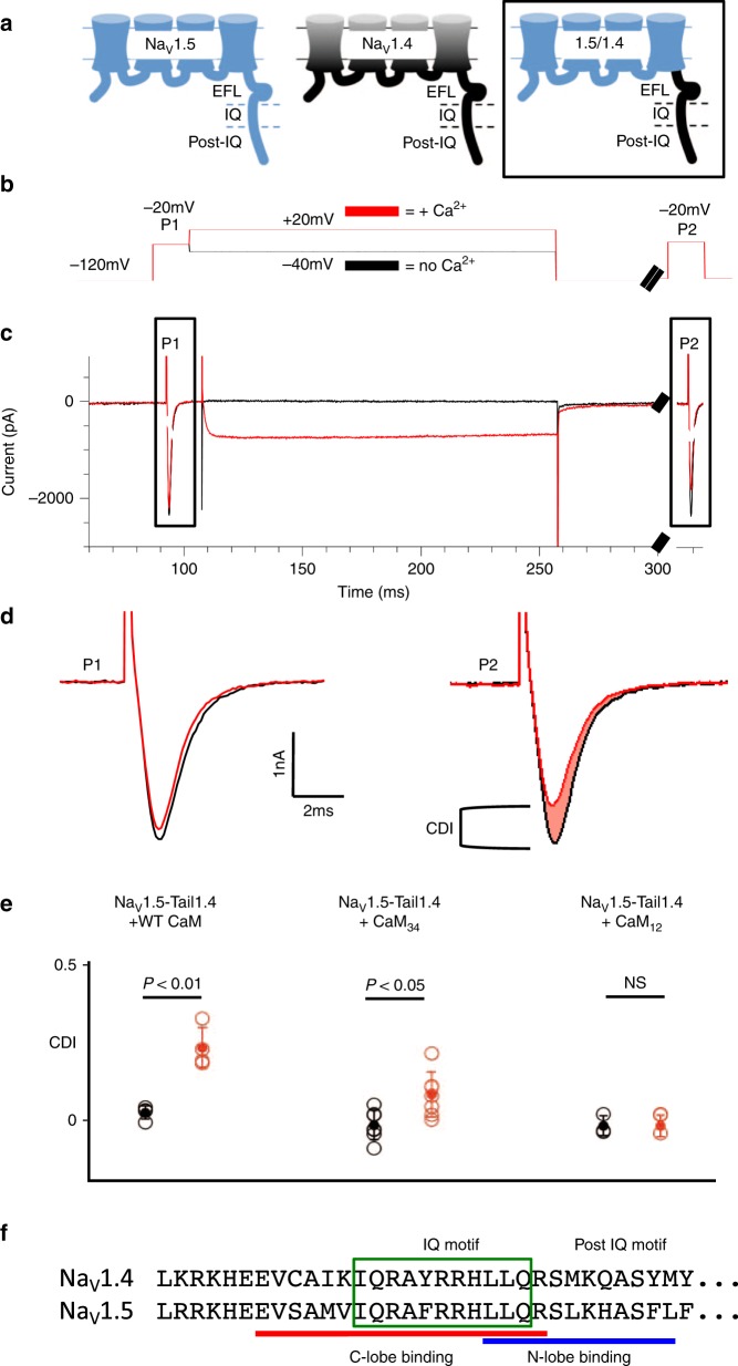 Skeletal muscle voltage-gated Na+ channel (NaV1.4) activity is subject to calmodulin (CaM) mediated Ca2+-dependent inactivation; no such inactivation is observed in the cardiac Na+ channel (NaV1.5). Taken together, the crystal structures of the NaV1.4 C-terminal domain relevant complexes and thermodynamic binding data presented here provide a rationale for this isoform difference. A Ca2+-dependent CaM N-lobe binding site previously identified in NaV1.5 is not present in NaV1.4 allowing the N-lobe to signal other regions of the NaV1.4 channel. Consistent with this mechanism, removing this binding site in NaV1.5 unveils robust Ca2+-dependent inactivation in the previously insensitive isoform. These findings suggest that Ca2+-dependent inactivation is effected by CaM's N-lobe binding outside the NaV C-terminal while CaM's C-lobe remains bound to the NaV C-terminal. As the N-lobe binding motif of NaV1.5 is a mutational hotspot for inherited arrhythmias, the contributions of mutation-induced changes in CDI to arrhythmia generation is an intriguing possibility.