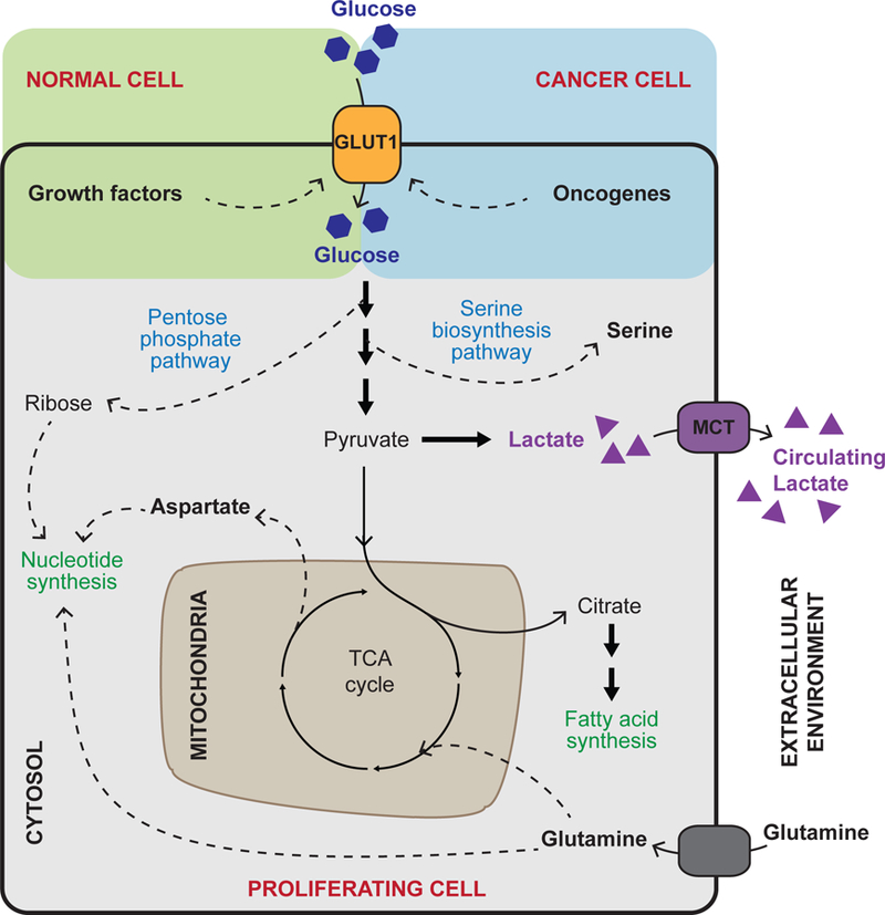 Cellular metabolism is at the foundation of all biological activities. The catabolic processes that support cellular bioenergetics and survival have been well studied. By contrast, how cells alter their metabolism to support anabolic biomass accumulation is less well understood. During the commitment to cell proliferation, extensive metabolic rewiring must occur in order for cells to acquire sufficient nutrients such as glucose, amino acids, lipids and nucleotides, which are necessary to support cell growth and to deal with the redox challenges that arise from the increased metabolic activity associated with anabolic processes. Defining the mechanisms of this metabolic adaptation for cell growth and proliferation is now a major focus of research. Understanding the principles that guide anabolic metabolism may ultimately enhance ways to treat diseases that involve deregulated cell growth and proliferation, such as cancer.