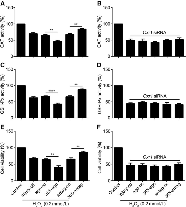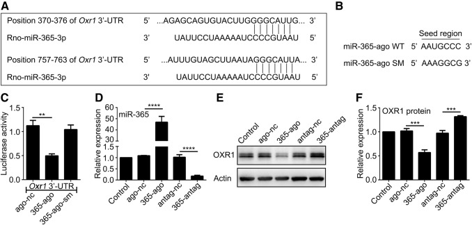 MicroRNA-365 (miR-365) is upregulated in the ischemic brain and is involved in oxidative damage in the diabetic rat. However, it is unclear whether miR-365 regulates oxidative stress (OS)-mediated neuronal damage after ischemia. Here, we used a transient middle cerebral artery occlusion model in rats and the hydrogen peroxide-induced OS model in primary cultured neurons to assess the roles of miR-365 in neuronal damage. We found that miR-365 exacerbated ischemic brain injury and OS-induced neuronal damage and was associated with a reduced expression of OXR1 (Oxidation Resistance 1). In contrast, miR-365 antagomir alleviated both the brain injury and OXR1 reduction. Luciferase assays indicated that miR-365 inhibited OXR1 expression by directly targeting the 3'-untranslated region of Oxr1. Furthermore, knockdown of OXR1 abolished the neuroprotective and antioxidant effects of the miR-365 antagomir. Our results suggest that miR-365 upregulation increases oxidative injury by inhibiting OXR1 expression, while its downregulation protects neurons from oxidative death by enhancing OXR1-mediated antioxidant signals.