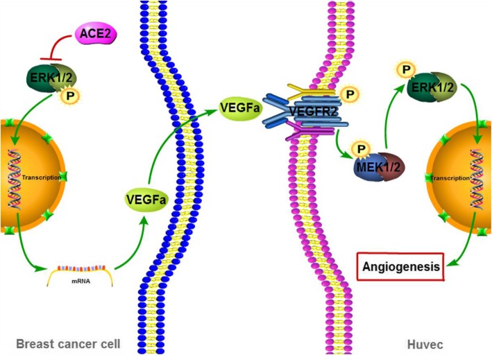 Keywords: ACE2; Angiogenesis; Breast cancer; ERK; VEGFR2; VEGFa.