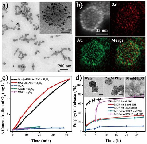 Tumor hypoxia, the "Achilles' heel" of current cancer therapies, is indispensable to drug resistance and poor therapeutic outcomes especially for radiotherapy. Here we propose an in situ catalytic oxygenation strategy in tumor using porphyrinic metal-organic framework (MOF)-gold nanoparticles (AuNPs) nanohybrid as a therapeutic platform to achieve O2 -evolving chemoradiotherapy. The AuNPs decorated on the surface of MOF effectively stabilize the nanocomposite and serve as radiosensitizers, whereas the MOF scaffold acts as a container to encapsulate chemotherapeutic drug doxorubicin. In vitro and in vivo studies verify that the catalase-like nanohybrid significantly enhances the radiotherapy effect, alleviating tumor hypoxia and achieving synergistic anticancer efficacy. This hybrid nanomaterial remarkably suppresses the tumor growth with minimized systemic toxicity, opening new horizons for the next generation of theranostic nanomedicines.