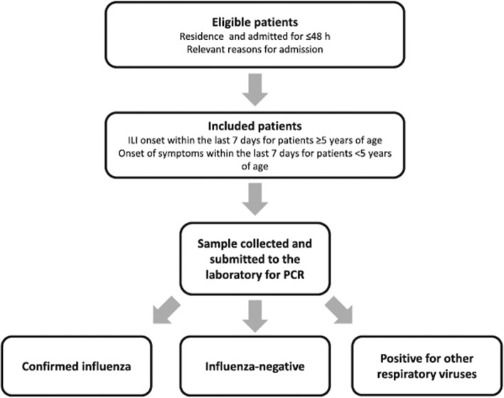 Methods: A RT-PCR test was performed to all patients that accomplished the requirements detailed on a common core protocol. Patients admitted were included in the study after signing the informed consent, if they were residents, not institutionalised, not discharged in the previous 30 days from other hospitalisation with symptoms onset within the 7 days prior to admission. Patients 5 years old or more must also complied the Influenza-Like Illness definition. A test negative-design was implemented to perform IVE analysis. IVE was estimated using a logistic regression model, with the formula IVE = (1-aOR) × 100, where aOR is the adjusted Odds Ratio comparing cases and controls.