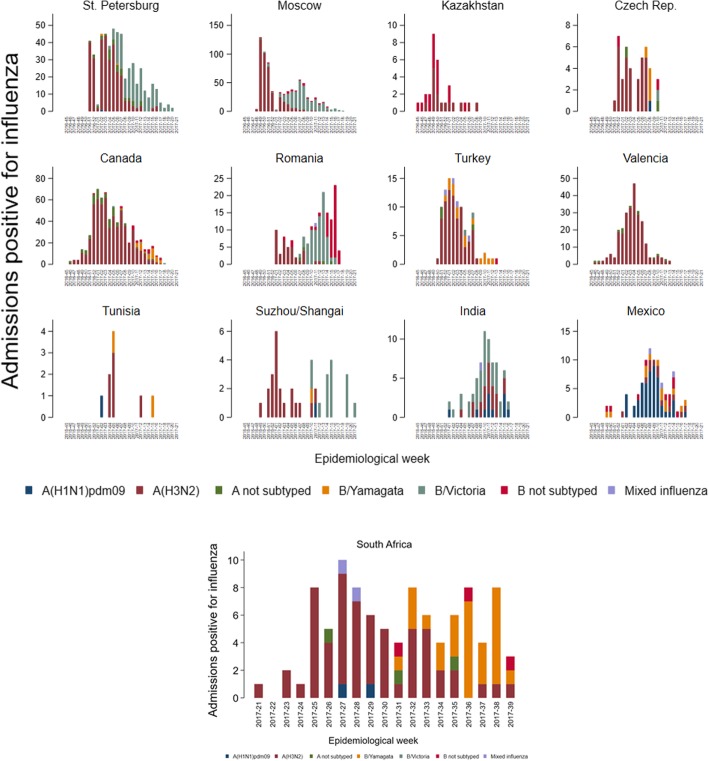 - Puig-Barberà J, Natividad-Sancho A, Trushakova S, Sominina A, Pisareva M, Ciblak MA, et al. Epidemiology of hospital admissions with influenza during the 2013/2014 northern hemisphere influenza season: results from the global influenza hospital surveillance network. PLoS One. 2016;11(5):e0154970. doi: 10.1371/journal.pone.0154970. - DOI - PMC - PubMed