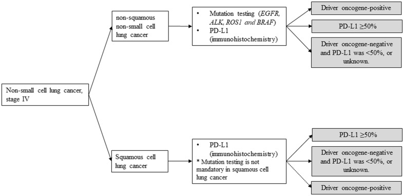 Keywords: Chemotherapy; Guideline; Kinase inhibitor; Non-small cell lung cancer; Programed cell death-1 inhibitor; Programed death-ligand 1 inhibitor.