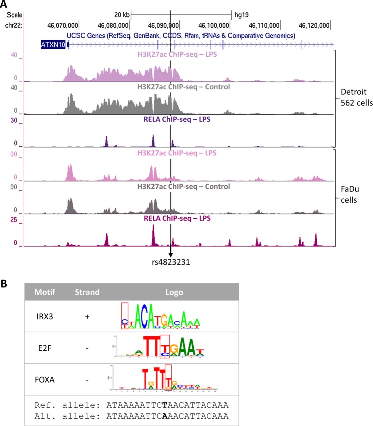Non-coding genetic variants play an important role in driving susceptibility to complex diseases but their characterization remains challenging. Here, we employed a novel approach to interrogate the genetic risk of such polymorphisms in a more systematic way by targeting specific regulatory regions relevant for the phenotype studied. We applied this method to meningococcal disease susceptibility, using the DNA binding pattern of RELA - a NF-kB subunit, master regulator of the response to infection - under bacterial stimuli in nasopharyngeal epithelial cells. We designed a custom panel to cover these RELA binding sites and used it for targeted sequencing in cases and controls. Variant calling and association analysis were performed followed by validation of candidate polymorphisms by genotyping in three independent cohorts. We identified two new polymorphisms, rs4823231 and rs11913168, showing signs of association with meningococcal disease susceptibility. In addition, using our genomic data as well as publicly available resources, we found evidences for these SNPs to have potential regulatory effects on ATXN10 and LIF genes respectively. The variants and related candidate genes are relevant for infectious diseases and may have important contribution for meningococcal disease pathology. Finally, we described a novel genetic association approach that could be applied to other phenotypes.