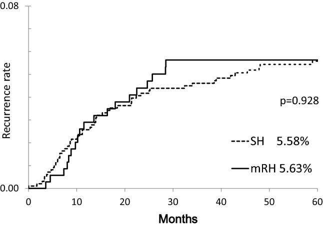 Conclusions: For endometrial cancer patients requiring surgery, the selection of a more extensive type of hysterectomy did not reduce the rate of local recurrence. Therefore, there is little significance in performing mRH in such cases.