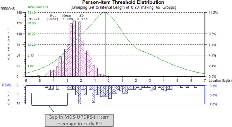 Results: RMT analyses showed neither scale was well targeted to early PD. A marked floor effect appeared for most items and a clear item gap was consistently observed in very mild severity of motor signs and levels of motor impact. The original MDS-UPDRS-II and -III scales also displayed disordered thresholds (9/13 and 20/33 items, respectively), indicating response scales not functioning as expected, and misfit (5/13 and 12/33 items, respectively), flagging areas for potential improvement.