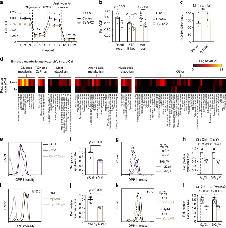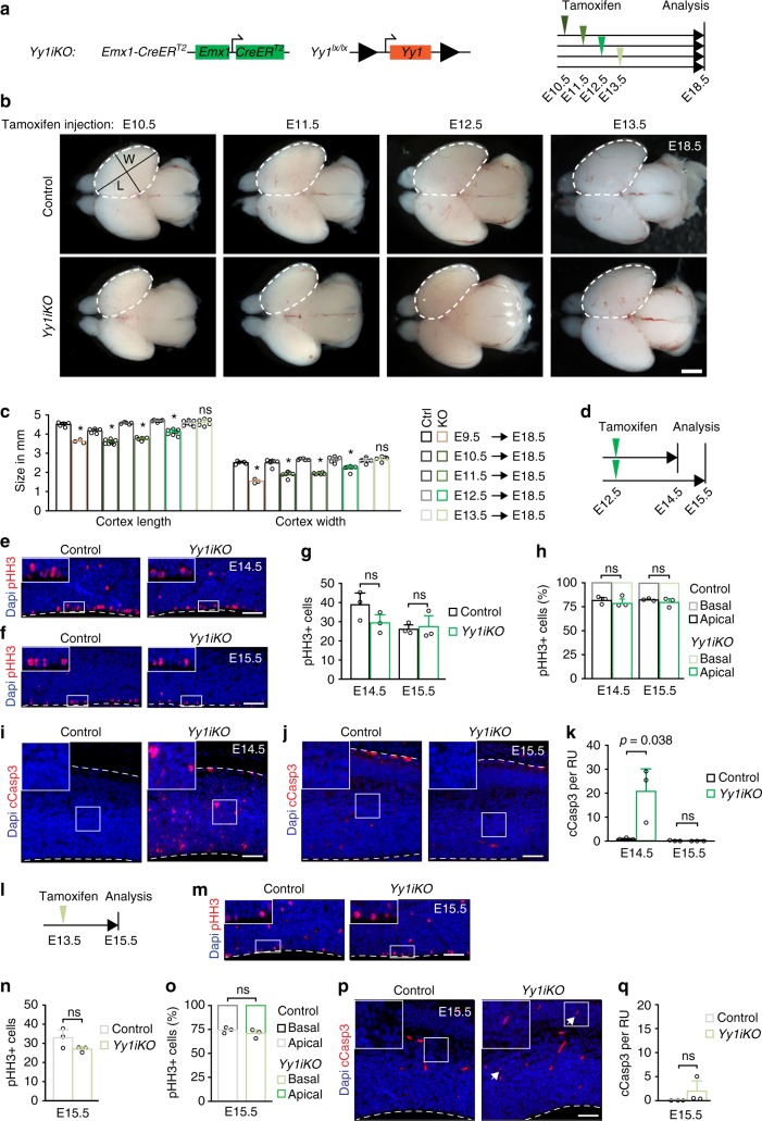 The transcription factor Yin Yang 1 (YY1) plays an important role in human disease. It is often overexpressed in cancers and mutations can lead to a congenital haploinsufficiency syndrome characterized by craniofacial dysmorphisms and neurological dysfunctions, consistent with a role in brain development. Here, we show that Yy1 controls murine cerebral cortex development in a stage-dependent manner. By regulating a wide range of metabolic pathways and protein translation, Yy1 maintains proliferation and survival of neural progenitor cells (NPCs) at early stages of brain development. Despite its constitutive expression, however, the dependence on Yy1 declines over the course of corticogenesis. This is associated with decreasing importance of processes controlled by Yy1 during development, as reflected by diminished protein synthesis rates at later developmental stages. Thus, our study unravels a novel role for Yy1 as a stage-dependent regulator of brain development and shows that biosynthetic demands of NPCs dynamically change throughout development.