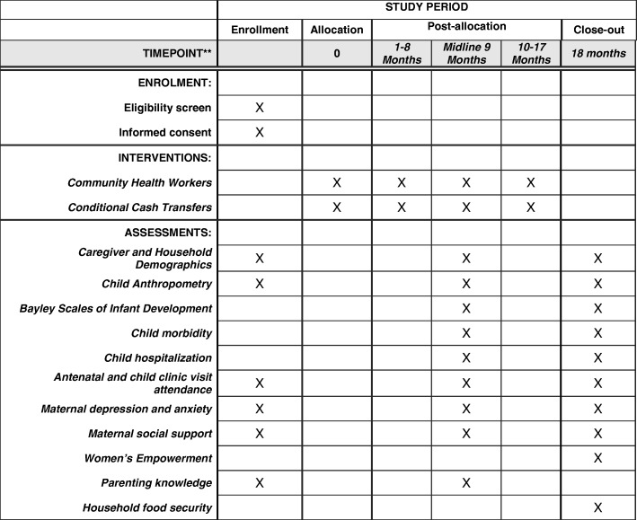 Keywords: Cash transfer; Child development; Community health worker; Nutrition.