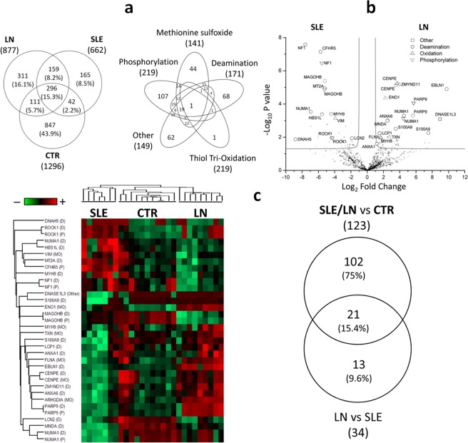 NETs constitute a network of DNA and proteins released by neutrophils in response to infectious and immunologic triggers. NET proteins are recognized as autoantigens in ANCA vasculitis; limited knowledge is available in other autoimmune pathologies. The composition of NETs produced ex vivo by resting and Phorbol-myristate acetate (PMA) stimulated neutrophils was analyzed by high-throughput Fusion Orbitrap technology in 16 patients with Systemic Lupus Erythematosus/Lupus nephritis (9 SLE/7 LN) and in 11 controls. Seven-hundred proteins were characterized and specific fingerprints discriminated LN from SLE. We focused on methyl-oxidized αenolase (methionine sulfoxide 93) that was markedly increased in NETs from LN and was localized in NET filaments in tight connection and outlying DNA. The isotype of anti-αenolase antibodies was IgG2 in LN and IgG4 in other autoimmune glomerulonephritis (Membranous Nephropathy, MN); serum anti-αenolase IgG2 were higher in LN than in SLE and absent in MN. The same IgG2 antibodies recognized 5 epitopes of the protein one containing methionine sulphoxide 93. In conclusion, specific NET protein fingerprints characterize different subsets of SLE; methyl-oxidized αenolase is over-expressed in LN. Circulating anti-αenolase IgG2 recognize the oxidized epitope and are high in serum of LN patients. Post-translational modified NET proteins contribute to autoimmunity in patients with LN.