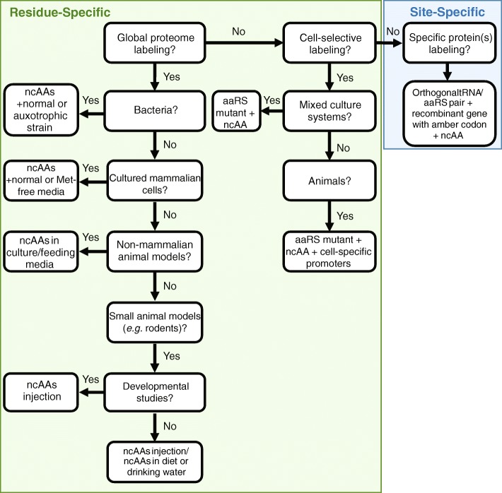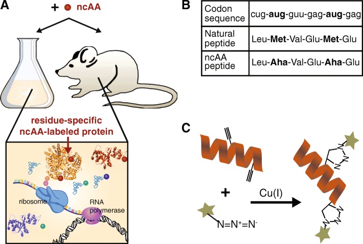 Keywords: Bioorthogonal chemistry; Biotechnology; Metabolic labeling; Proteomics; Residue-specific labeling; Site-specific labeling.
