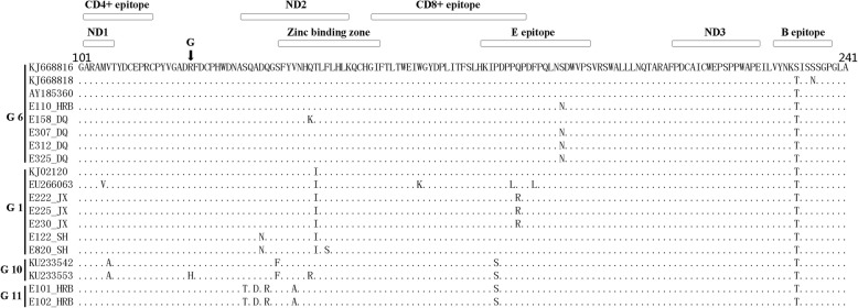 Results: A total of 730 blood samples were collected from nine different farms in six regions of Heilongjiang. The results showed that the infection rate of these regions ranged from null to 31%. With a clustering analysis of 60 published BLV env sequences, genotypes 1 and 6 were confirmed to be circulating in Heilongjiang. Importantly, a new genotype, 11, and a new subgenotype, 6E, were also identified in the Harbin and Daqing regions, respectively. An epitope analysis showed that a cluster of T-X-D-X-R-XXXX-A sequences in genotype 11 gp51 neutralizing domain 2 was unique among all currently known BLV isolates and was therefore a defining feature of this new genotype.