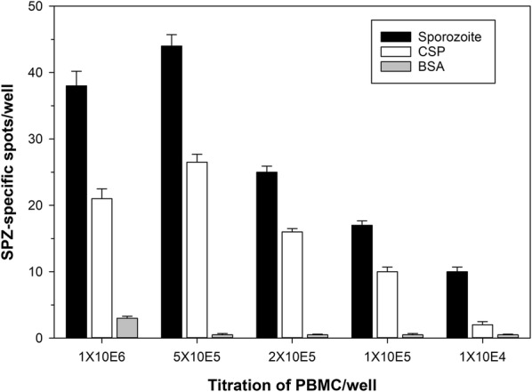 Conclusion: The newly developed sporozoite-based B cell ELISpot enables the monitoring of changes in the frequency of sporozoite-specific B cells. Applying this assay to assess the potency of vaccination regimens or seasonal changes in B cell populations from subjects residing in malaria-endemic areas will provide an opportunity to gain insight into immune mechanisms involved in protection and/or disease.