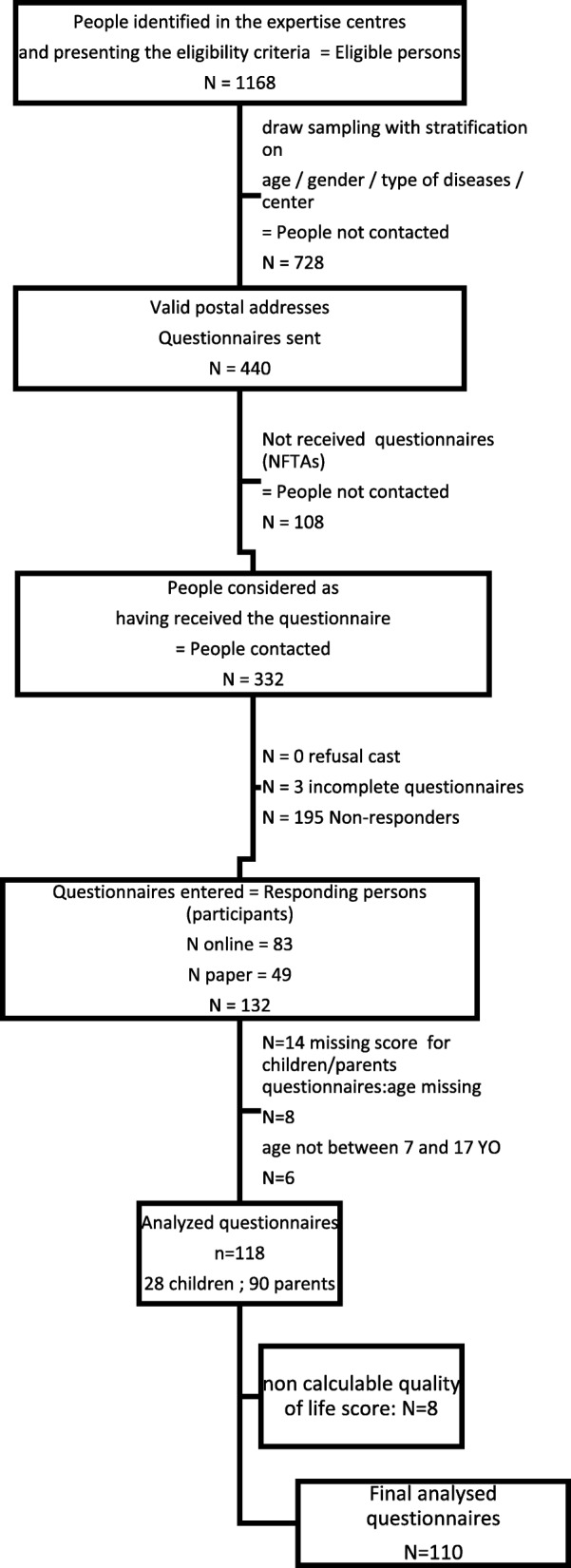 Material and methods: We conducted a national cohort study in French centres for rare diseases (RD) specialized in orofacial diseases. The inclusion criteria were: to have received care in RD centres over the last 5 years (2012-2017) and to have been between 6 and 17 years of age on September 1, 2017. Patients were invited to answer a questionnaire composed of socio-demographic, clinical and dental questions, psychosocial questions and then fill in the Child-OIDP Index. At the end of the questionnaire, a free space was left for the patient to add a verbatim comment to provide qualitative data. Thematic analysis was used to analyze the verbatim answers.