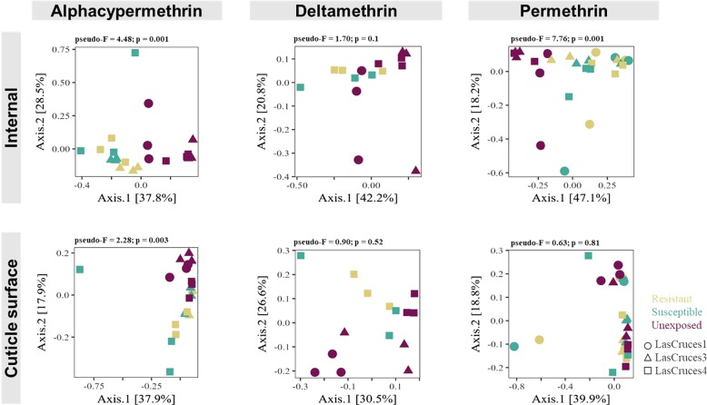 Pyrethroid exposure alters internal and cuticle surface bacterial communities in Anopheles albimanus