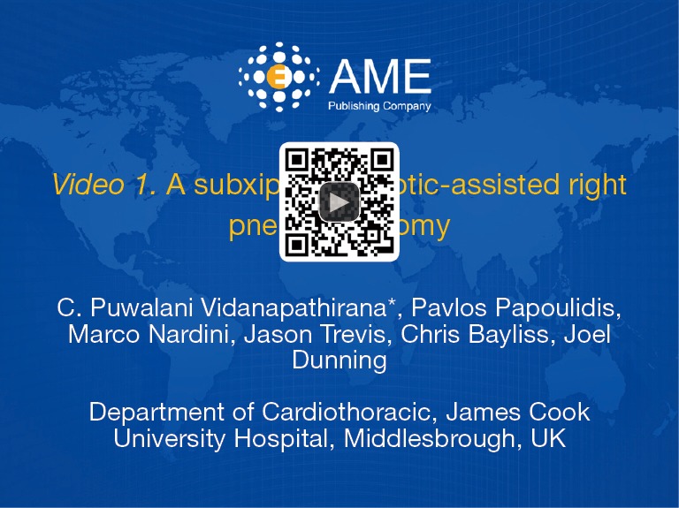 - Vidanapathirana CP, Papoulidis P, Nardini M, et al. A subxiphoid robotic-assisted right pneumonectomy. Asvide 2019;6:123. Available online: http://www.asvide.com/article/view/31343 - PMC - PubMed