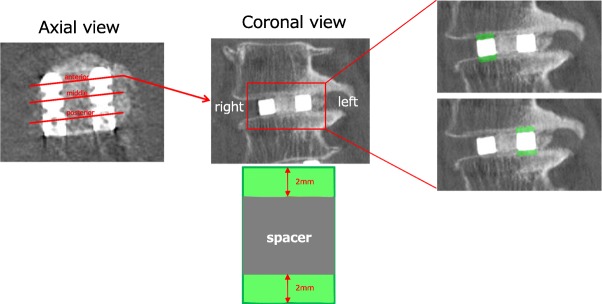 Results: There was no significant difference between the degree of osteosclerosis (as assessed by the density) around the treated versus untreated cages at any timepoint. The ratio of carbon attachment of the titanium cages was only 20%, which was markedly less than the ratio of carbon attachment to titanium instrumentation previously reported in the dentistry field.