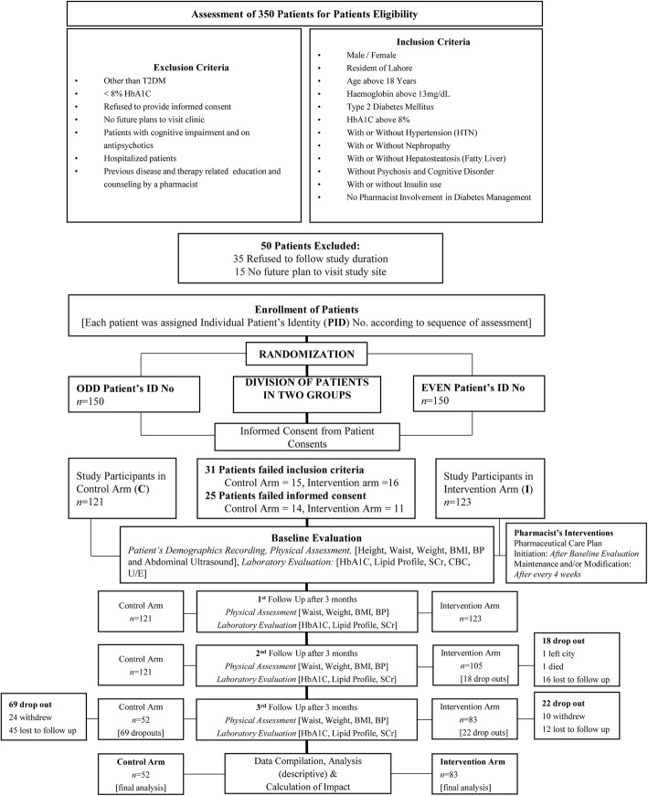 Keywords: Blood pressure; Glycemic control; HbA1c; Lahore; Pakistan; Pharmaceutical care; Pharmacist; Randomized control; T2DM.