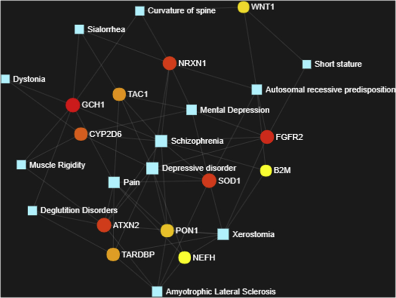Material and methods: Curated databases of Gene-Disease Association, www.DisGeNet.org and www.networkanalyst.ca were effectively used to identify the probable genes, strength of association and the drug-genes pathway that could be possibly be involved. The genes associated with schizophrenia and SA were analyzed in detail. Protein-Protein interaction (PPI) network proven experimentally in humans were used to identify the missing or unreported links.