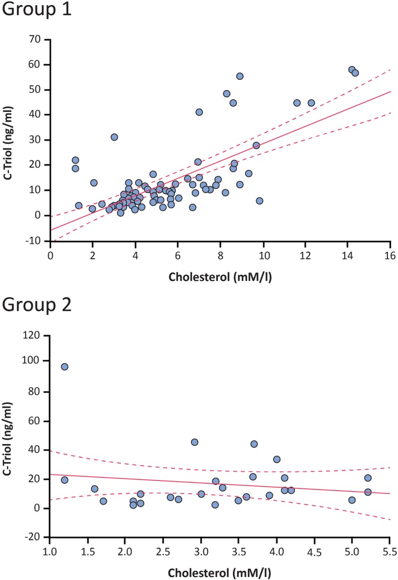 Results: Increased C-triol level (> 50 ng/ml) was detected in 4 (of 108) infants with cholestasis syndrome of unknown origin, with following molecular genetic NP-C diagnosis for one patient. Plasma cholesterol significantly correlates with C-triol (p < 0.05). NGS of high C-triol infants identified three patients with mutations in JAG1 (Alagille syndrome) and ABCB11 (Byler disease) genes. Increased ChT activity was detected in 8 (of 108) patients with various aetiologies, including NP-C, Byler disease and biliary atresia.