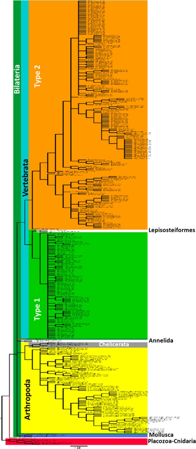 Peptidic messengers constitute a highly diversified group of intercellular messengers widely distributed in nature that regulate a great number of physiological processes in Metazoa. Being crucial for life, it seem that they have appeared in the ancestral group from which Metazoa evolved, and were highly conserved along the evolutionary process. Peptides act mainly through G-protein coupled receptors (GPCRs), a family of transmembrane molecules. GPCRs are also widely distributed in nature being present in metazoan, but also in Choanoflagellata and Fungi. Among GPCRs, the Allatotropin/Orexin (AT/Ox) family is particularly characterized by the presence of the DRW motif in the second intracellular loop (IC Loop 2), and seems to be present in Cnidaria, Placozoa and in Bilateria, suggesting that it was present in the common ancestor of Metazoa. Looking for the evolutionary history of this GPCRs we searched for corresponding sequences in public databases. Our results suggest that AT/Ox receptors were highly conserved along evolutionary process, and that they are characterized by the presence of the E/DRWYAI motif at the IC Loop 2. Phylogenetic analyses show that AT/Ox family of receptors reflects evolutionary relationships that agree with current phylogenetic understanding in Actinopterygii and Sauropsida, including also the largely discussed position of Testudines.
