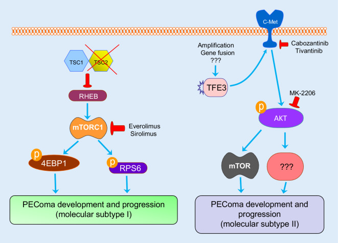 Perivaskuläre epitheloidzellige Tumoren (PECome) gehören zu einer Familie von mesenchymalen Neoplasien mit Merkmalen der melanotischen und glattmuskulären Differenzierung. Die Morphologie der PECome ist sehr variabel und umfasst epitheloide und spindelige Zellen, oft mit klarem Zytoplasma und prominenten Nukleoli. Molekular sind die meisten PECome durch einen Funktionsverlust des TSC1-TSC2-Komplexes definiert. Zusätzlich wurde eine kleine Untergruppe von PEComen identifiziert, die Rearrangements des TFE3(Xp11)-Genlocus aufzeigen. Anhand von 3 Fallberichten sollen die diagnostischen Fallstricke und die Bedeutung der molekularen Charakterisierung von PEComen auch wegen der therapeutischen Konsequenzen näher dargestellt werden.
