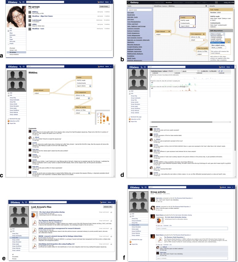 Results: We present ElGalaxy, a system designed and developed to support collaboration and information sharing among researchers. Specifically, we integrated collaborative functionalities within an application usually adopted by Life Science researchers. ElGalaxy, therefore, is the result of the integration of Galaxy, i.e., a Workflow Management System, with Elgg, i.e., a Social Network Engine.