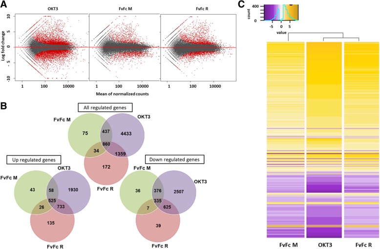 Conclusions: We used a deep transcriptome sequencing method for comparing three anti-CD3 antibodies in terms of Gene Ontology enrichment and immunological marker expression. The present data showed that both recombinant antibodies induced a compatible expression profile, suggesting that they might be candidates for a closer evaluation with respect to their therapeutic value. Moreover, the proposed methodology is amenable to be more generally applied for molecular comparison of cell receptor dependent antibody therapy.