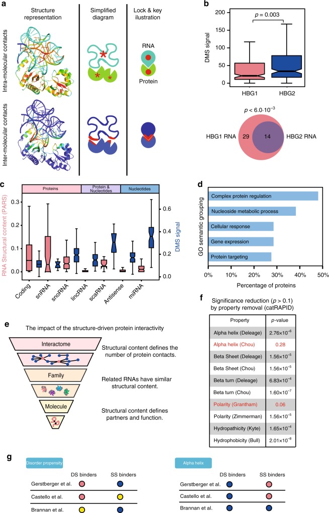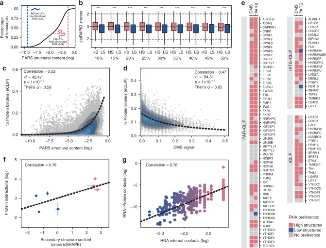 The combination of high-throughput sequencing and in vivo crosslinking approaches leads to the progressive uncovering of the complex interdependence between cellular transcriptome and proteome. Yet, the molecular determinants governing interactions in protein-RNA networks are not well understood. Here we investigated the relationship between the structure of an RNA and its ability to interact with proteins. Analysing in silico, in vitro and in vivo experiments, we find that the amount of double-stranded regions in an RNA correlates with the number of protein contacts. This relationship -which we call structure-driven protein interactivity- allows classification of RNA types, plays a role in gene regulation and could have implications for the formation of phase-separated ribonucleoprotein assemblies. We validate our hypothesis by showing that a highly structured RNA can rearrange the composition of a protein aggregate. We report that the tendency of proteins to phase-separate is reduced by interactions with specific RNAs.