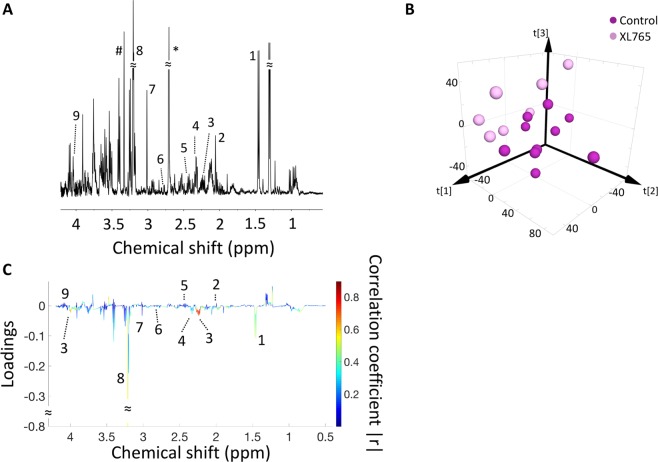 70-90% of low-grade gliomas and secondary glioblastomas are characterized by mutations in isocitrate dehydrogenase 1 (IDHmut). IDHmut produces the oncometabolite 2-hydroxyglutarate (2HG), which drives tumorigenesis in these tumors. The phosphoinositide-3-kinase (PI3K)/mammalian target of rapamycin (mTOR) pathway represents an attractive therapeutic target for IDHmut gliomas, but noninvasive indicators of drug target modulation are lacking. The goal of this study was therefore to identify magnetic resonance spectroscopy (MRS)-detectable metabolic biomarkers associated with IDHmut glioma response to the dual PI3K/(mTOR) inhibitor XL765. 1H-MRS of two cell lines genetically modified to express IDHmut showed that XL765 induced a significant reduction in several intracellular metabolites including 2HG. Importantly, examination of an orthotopic IDHmut tumor model showed that enhanced animal survival following XL765 treatment was associated with a significant in vivo 1H-MRS detectable reduction in 2HG but not with significant inhibition in tumor growth. Further validation is required, but our results indicate that 2HG could serve as a potential noninvasive MRS-detectable metabolic biomarker of IDHmut glioma response to PI3K/mTOR inhibition.