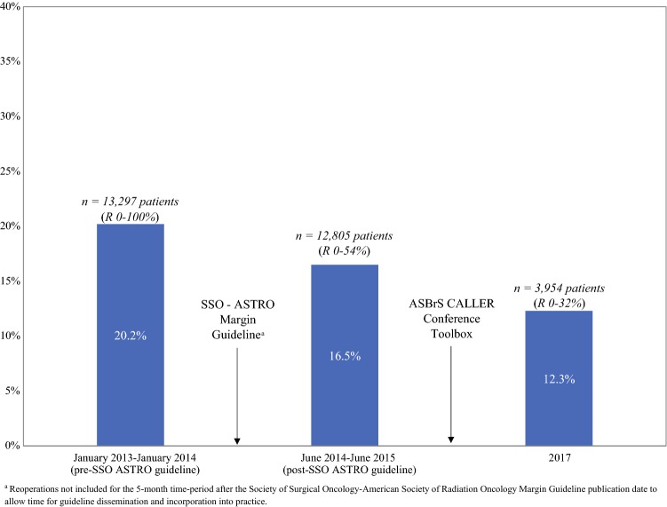 Conclusions: Although ASBrS member surgeons had some of the lowest rates of reoperation reported in any registry, significant intersurgeon variability persisted. Further efforts to lower rates are therefore warranted. Opportunities to do so were identified by adopting those processes of care, including improved compliance with the SSO-ASTRO margin guideline, which were associated with fewer reoperations.