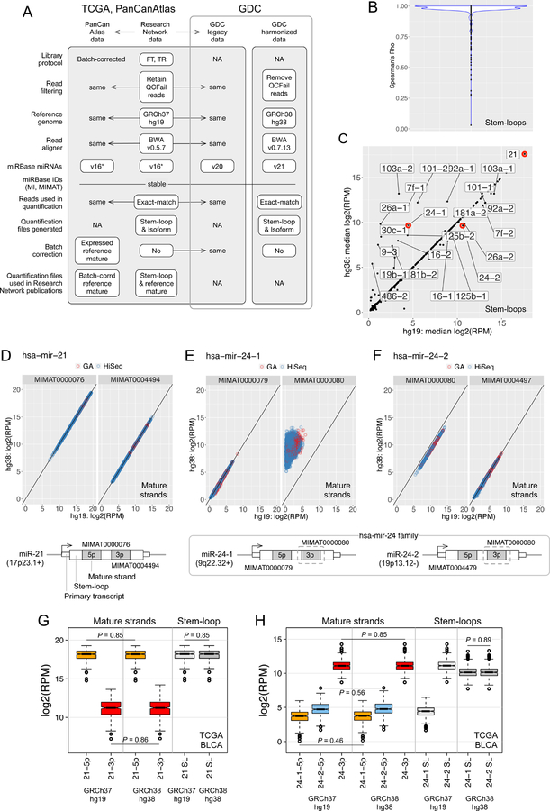 We present a systematic analysis of the effects of synchronizing a large-scale, deeply characterized, multi-omic dataset to the current human reference genome, using updated software, pipelines, and annotations. For each of 5 molecular data platforms in The Cancer Genome Atlas (TCGA)-mRNA and miRNA expression, single nucleotide variants, DNA methylation and copy number alterations-comprehensive sample, gene, and probe-level studies were performed, towards quantifying the degree of similarity between the 'legacy' GRCh37 (hg19) TCGA data and its GRCh38 (hg38) version as 'harmonized' by the Genomic Data Commons. We offer gene lists to elucidate differences that remained after controlling for confounders, and strategies to mitigate their impact on biological interpretation. Our results demonstrate that the hg19 and hg38 TCGA datasets are very highly concordant, promote informed use of either legacy or harmonized omics data, and provide a rubric that encourages similar comparisons as new data emerge and reference data evolve.