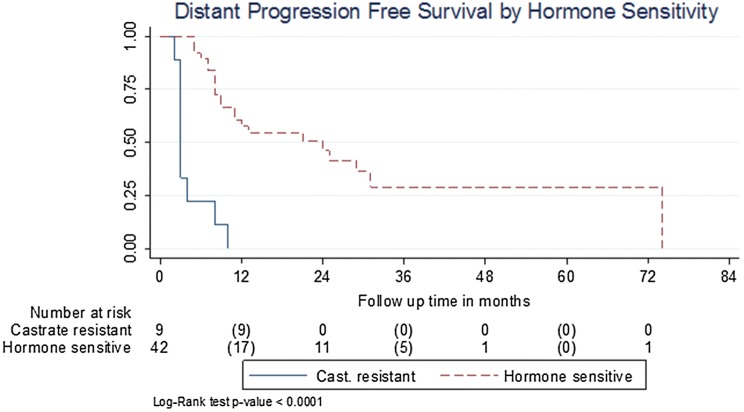 Methods: This is a single-centre retrospective cohort study. Hormone-sensitive and castrate-resistant patients with oligometastatic (≤ 3) bone-only prostate cancer treated with SBRT were included. Data were collected using electronic records. Kaplan-Meier survivor function, log rank test, as well as Cox regression were used to calculate PFS and overall survival.