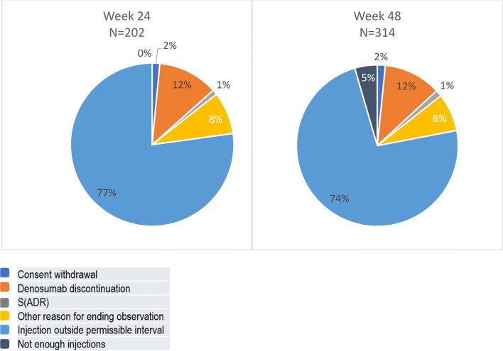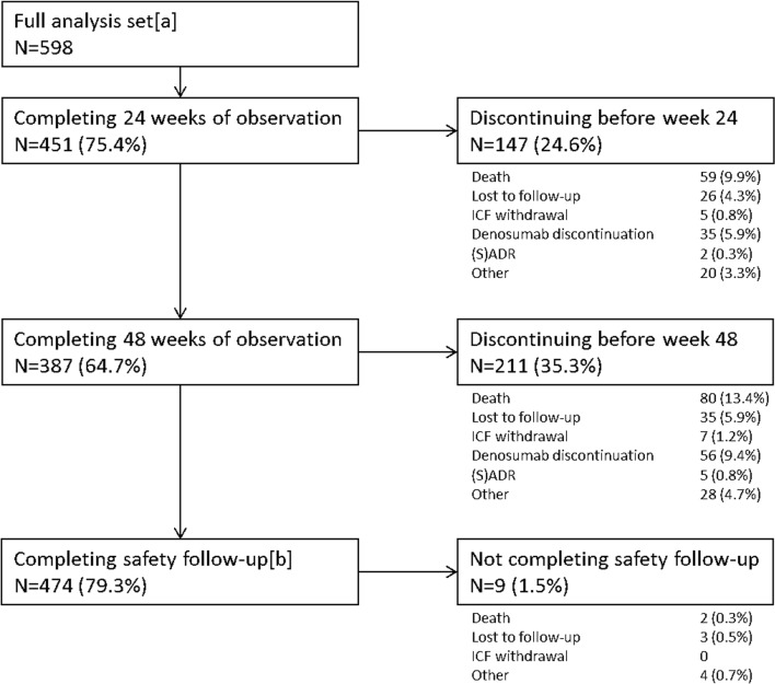 Conclusions: Most patients received denosumab regularly once every four weeks over 24 weeks of treatment. Non-persistence was mainly due to delayed administration. The incidence of adverse drug reactions, especially of osteonecrosis of the jaw, was in line with expectations from previous studies.