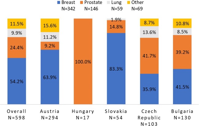 Methods: This was a single-arm, prospective, observational, non-interventional study in 598 patients with bone metastases from breast, prostate, lung, or other solid tumors treated with denosumab every four weeks in real-world clinical practice in Austria, Czech Republic, Hungary, Slovakia, and Bulgaria. Persistence was defined as denosumab administration at ≤ 35-day intervals over 24 or 48 weeks, respectively.
