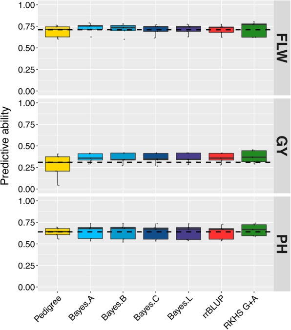 Results: Empirical validation tests performed on the 1k-RiCA showed average marker call rates of 95% with marker repeatability and concordance rates of 99%. These technical properties were not affected when two common DNA extraction protocols were used. The average distance between SNPs in the 1k-RiCA was 1.5 cM, similar to the theoretical distance which would be expected between 1,000 uniformly distributed markers across the rice genome. The average minor allele frequencies on a panel of indica lines was 0.36 and polymorphic SNPs estimated on pairwise comparisons between indica by indica accessions and indica by japonica accessions were on average 430 and 450 respectively. The specific design parameters of the 1k-RiCA allow for a detailed view of genetic relationships and unambiguous molecular IDs within indica accessions and good cost vs. marker-density balance for genomic prediction applications in elite indica germplasm. Predictive abilities of Genomic Selection models for flowering time, grain yield, and plant height were on average 0.71, 0.36, and 0.65 respectively based on cross-validation analysis. Furthermore the inclusion of important trait markers associated with 11 different genes and QTL adds value to parental selection in crossing schemes and marker-assisted selection in forward breeding applications.