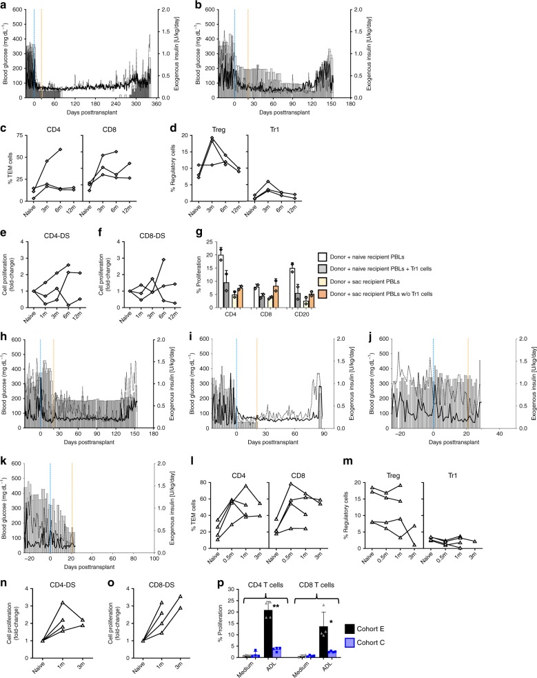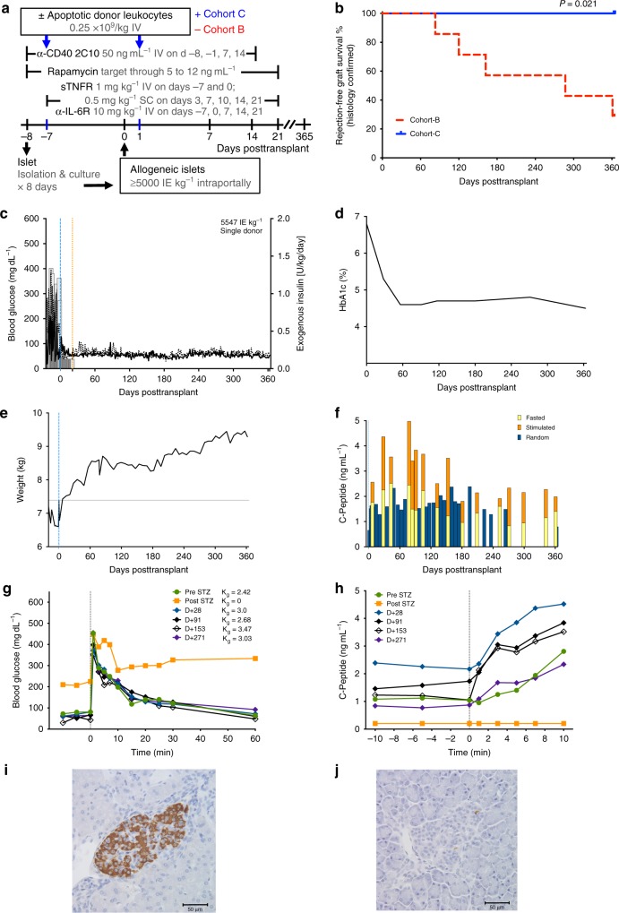 S.R. and C.B. received research support for projects not reported in this article by Diabetes-Free, Inc., an organization that may gain or lose financially through this publication. M.L.G. is a paid consultant for Otsuka Pharmaceutical Factory, Inc. S.D.M. is a co-founder, member of the SAB and a paid consultant for Cour Pharmaceuticals Development Company; a member of the SAB and a paid consultant for NextCure Inc.; and a paid consultant for Kite Pharmaceuticals. S.D.M. and X.L. are inventors on issued patent no. US 8,734,786 B2 submitted by Northwestern University that covers the use of ECDI-fixed cell tolerance as a method for preventing allograft rejection. B.J.H. has an equity interest in and serves as an executive officer of Diabetes-Free, an organization that may commercially benefit from the results of this research. This interest has been reviewed and managed by the University of Minnesota in accordance with its Conflict of Interest policies. The other authors declare no competing interests.