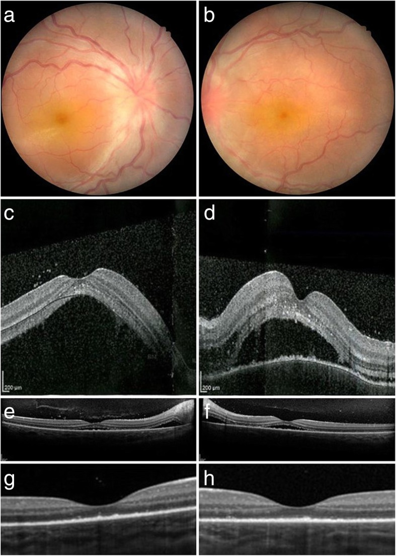 Case presentation: A 3-year-old girl with probable VKH was referred to Kobe University Hospital. She had severe bilateral panuveitis with posterior synechiae of the iris, marked optic disk swelling, and serous retinal detachment in both eyes, and her best corrected visual acuities (BCVAs) were 20/200 OD and 20/125 OS. A third course of therapy was administered because serous retinal detachment remained after two courses of therapy. She was treated with three courses of high-dose intravenous corticosteroid therapy, followed by slow tapering of oral corticosteroids. Her BCVAs recovered to 20/16 OU, and relapse of ocular inflammation and side effect of treatment were not observed during the 1.5-year follow-up period.