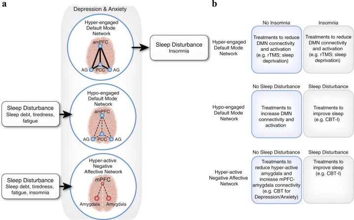 In advancing precision psychiatry, we focus on what imaging technology and computational approaches offer for the future of diagnostic subtyping and personalized tailoring of interventions for sleep impairment in mood and anxiety disorders. Current diagnostic criteria for mood and anxiety tend to lump different forms of sleep disturbance together. Parsing the biological features of sleep impairment and brain circuit dysfunction is one approach to identifying subtypes within these disorders that are mechanistically coherent and offer targets for intervention. We focus on two large-scale neural circuits implicated in sleep impairment and in mood and anxiety disorders: the default mode network and negative affective network. Through a synthesis of existing knowledge about these networks, we pose a testable framework for understanding how hyper- versus hypo-engagement of these networks may underlie distinct features of mood and sleep impairment. Within this framework we consider whether poor sleep quality may have an explanatory role in previously observed associations between network dysfunction and mood symptoms. We expand this framework to future directions including the potential for connecting circuit-defined subtypes to more distal features derived from digital phenotyping and wearable technologies, and how new discovery may be advanced through machine learning approaches.