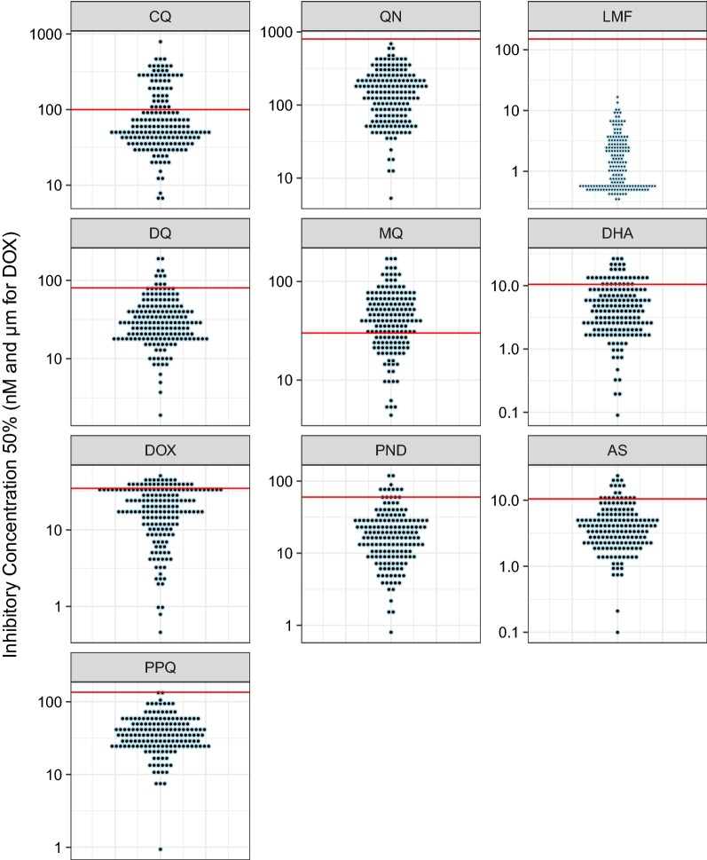 Methods: Mutations on pfugt, pfact and pfcarl were characterized on 86 isolates collected in Dakar, Senegal and 173 samples collected from patients hospitalized in France after a travel in African countries from 2015 and 2016 to assess their potential association with ex vivo susceptibility to chloroquine, quinine, lumefantrine, monodesethylamodiaquine, mefloquine, dihydroartemisinin, artesunate, doxycycline, pyronaridine and piperaquine.