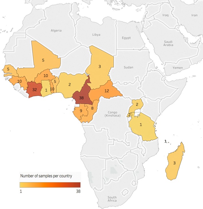 Results: No mutations were found on the genes pfugt and pfact. None of the pfcarl described mutations were identified in these samples from Africa. The K784N mutation was found in one sample and the K734M mutation was identified on 7.9% of all samples for pfcarl. The only significant differences in ex vivo susceptibility according to the K734M mutation were observed for pyronaridine for African isolates from imported malaria and for doxycycline for Senegalese parasites.