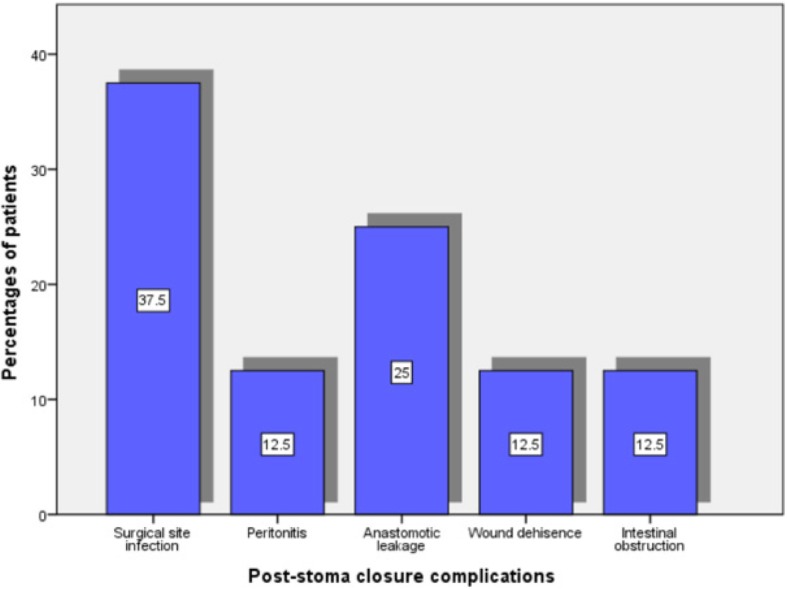 Results: A total of 167 patients (M: F = 1.2:1) were enrolled in the study. The mean age at diagnosis was 0.6 ± 1.4 years for children and mean age for adults was 36.7 ± 15.8 years. Anorectal malformation (110, 89.4%) was the most common indication for intestinal stoma formation in children, while bowel perforation (14, 31.8%) was the main indications in adults. The sigmoid colon (137, 82.0%) was the most common anatomical site for stoma formation followed by the ileum (18, 10.8%). Stoma prolapse (18, 41.9%) was the most frequent complication of a stoma, whereas, surgical site infection (9, 34.6%) was the most frequent complication after stoma closure. Thirty five (26.7.%) of the children developed stomal complications, while only 8 (22.2%) of the adults developed complications. The level of training of operating surgeon and timing of surgery were the main predictors of stoma-related complications (p < 0.034 and 0.013), whereas the level of training of the operating surgeon and the type of stoma closure were significantly associated with the complications related to stoma closure (p < 0.001).