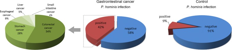 Conclusions: To our knowledge, this study is the first report presenting the high association between P. hominis and gastrointestinal cancers. Nevertheless, whether there is any possible pathological role of P. hominis infection in cancer patients needs to be further elucidated.