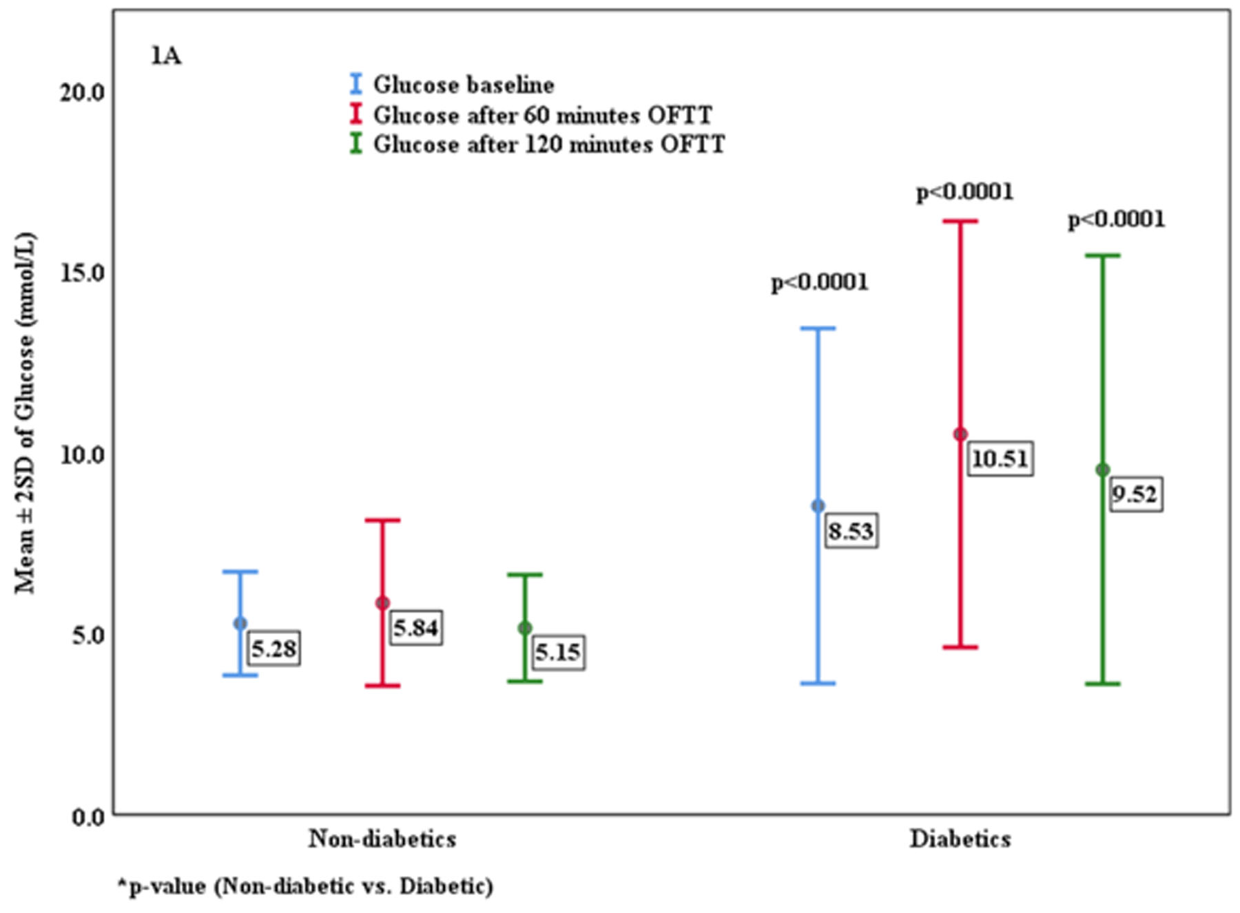Results: Serum uric acid was lower in people with type 2 diabetes compared to controls with a similar BMI, especially those with poor glucose control (glycosylated hemoglobin [HbA1c] ≥ 8%). Fructose administration raised serum uric acid in both groups, with a lower absolute rise in people with diabetes. People with diabetes with a blunted rise in serum uric acid had higher baseline serum uric acid concentrations and a higher BMI. People without diabetes with a higher BMI also showed a blunted serum uric acid response. Oral glucose administration lowered serum uric acid in both participants, with a greater fall in those with diabetes.