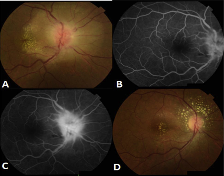 Results: Cat scratch disease (CSD) is a worldwide distributed systemic infectious disease caused by a bacterium, Bartonella henselae (B. henselae) which is usually transmitted to humans through contact with infected cats. Ocular manifestations of CSD are diverse, with neuroretinitis and superficial retinal infiltrates being the most common and typical manifestations. Neuroretinitis typically presents as optic disc edema with a partial or complete macular star in association with mild vitritis. Macular star may be absent at the initial presentation, becoming evident 1-2 weeks after the onset of optic disc edema. Diagnosis of CSD is confirmed by reliable laboratory tests. Neuroretinitis usually has a self-limited course. Antibiotic therapy is required for severe systemic disease and vision-threatening ocular involvement. The adjunctive use of oral corticosteroids may further improve the visual outcome.